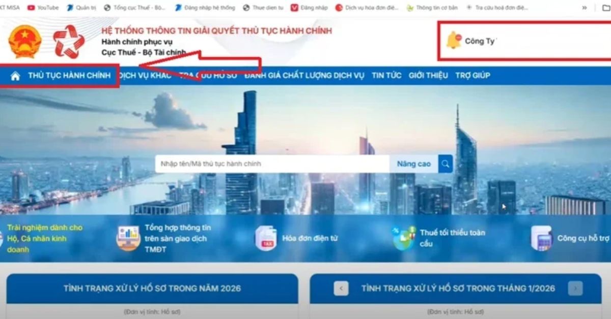 Bước 2: Chọn mục Thủ tục hành chính trên giao diện hệ thống