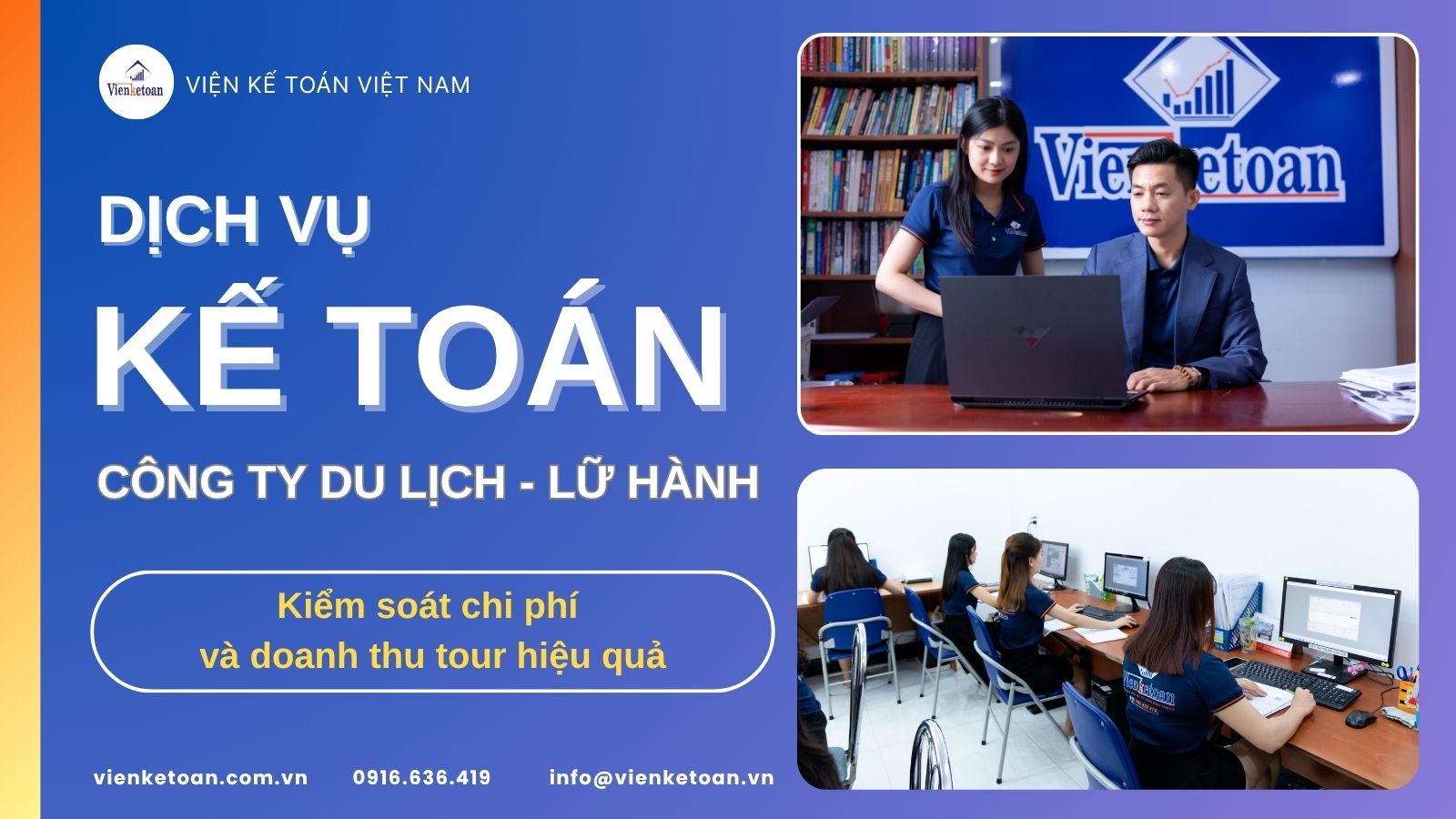 👉 Viện Kế Toán Việt Nam mang đến dịch vụ kế toán công ty du lịch – lữ hành trọn gói, giúp doanh nghiệp kiểm soát tài chính, giảm thiểu rủi ro thuế và tập trung phát triển kinh doanh bền vững.