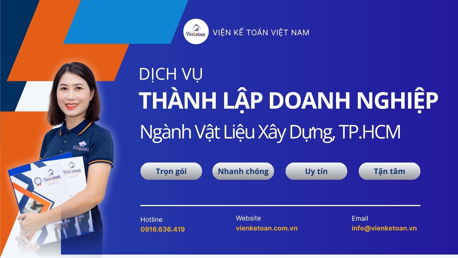 Đó là lý do Viện Kế Toán Việt Nam mang đến dịch vụ thành lập công ty vật liệu xây dựng tại Bình Dương, trọn gói – uy tín – đúng quy định pháp luật, giúp doanh nghiệp của anh/chị bắt kịp cơ hội thị trường mà không lo vướng mắc thủ tục.